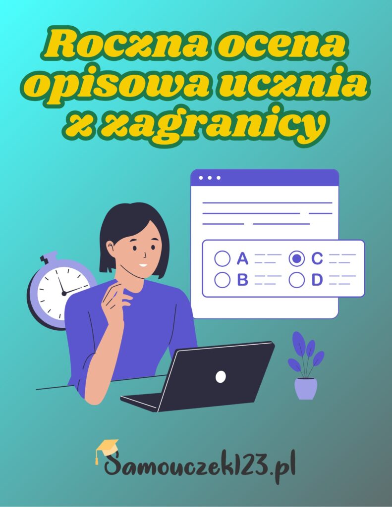 Zawiera przykład gotowej rocznej oceny opisowej dla ucznia z zagranicy na trzech